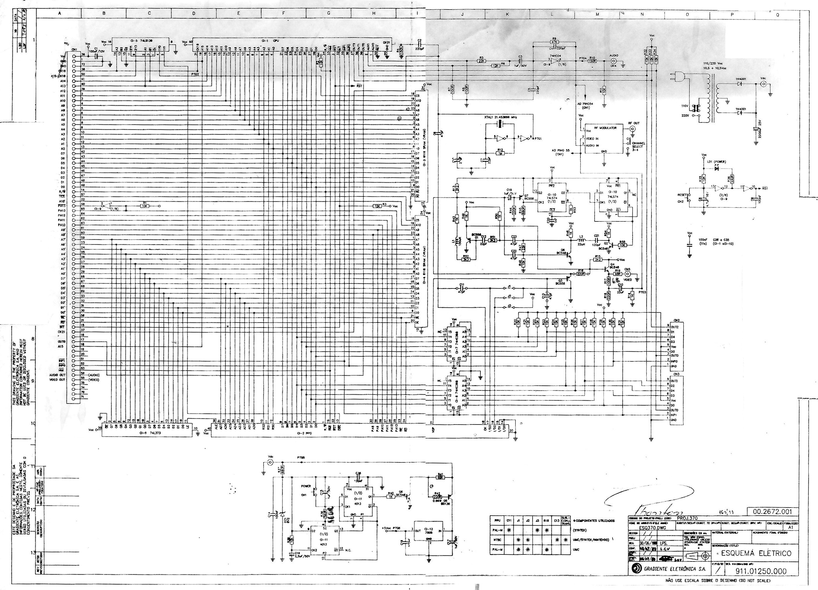 Esquema do video-game Phantom System, da Gradiente, compatível com o Nintendinho (NES).