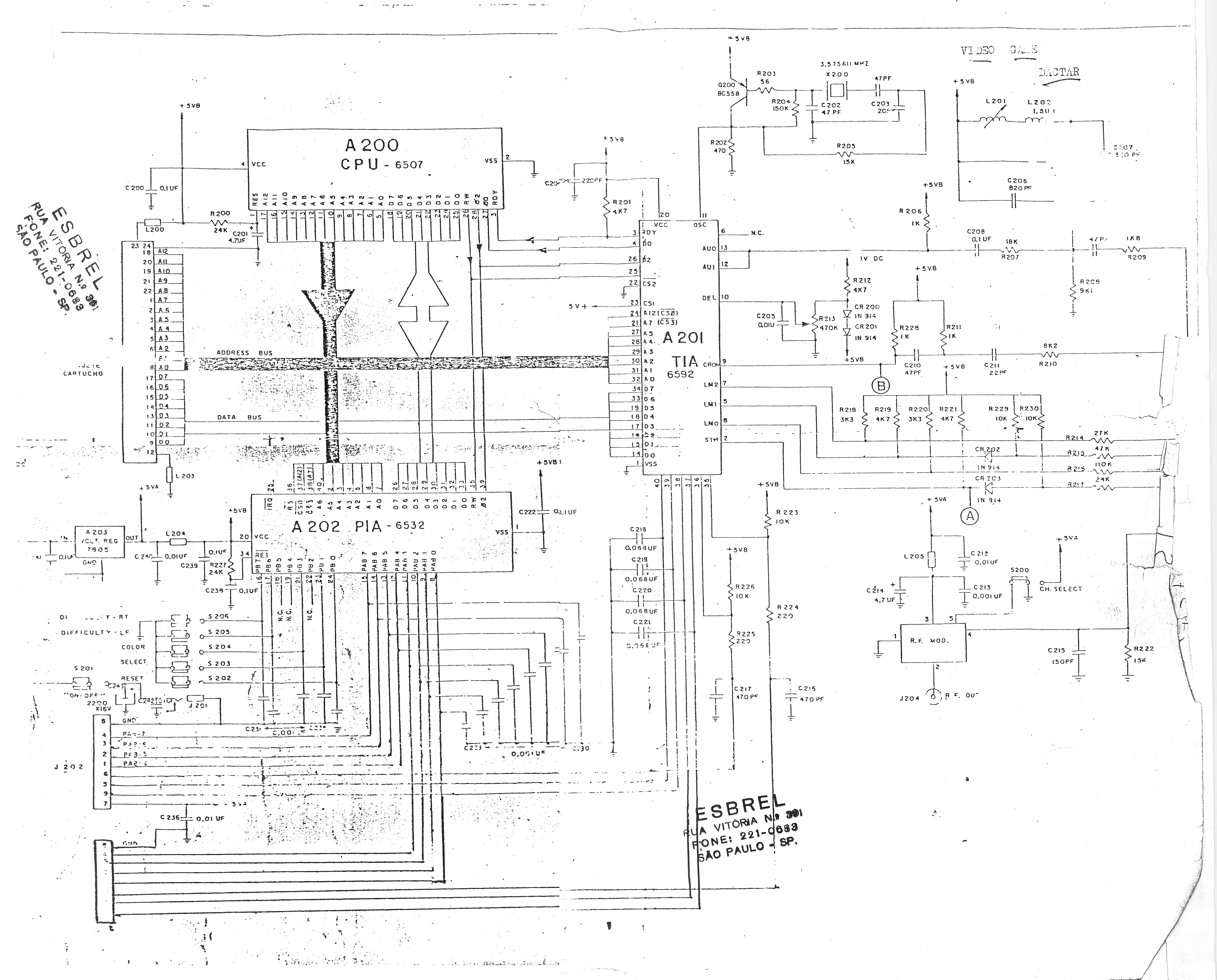 Esquema do video-game Dactar 3 da Milmar, compatível com o Atari. Este esquema está mais completo, inclui o esquema da placa de conversão para PAL-M.