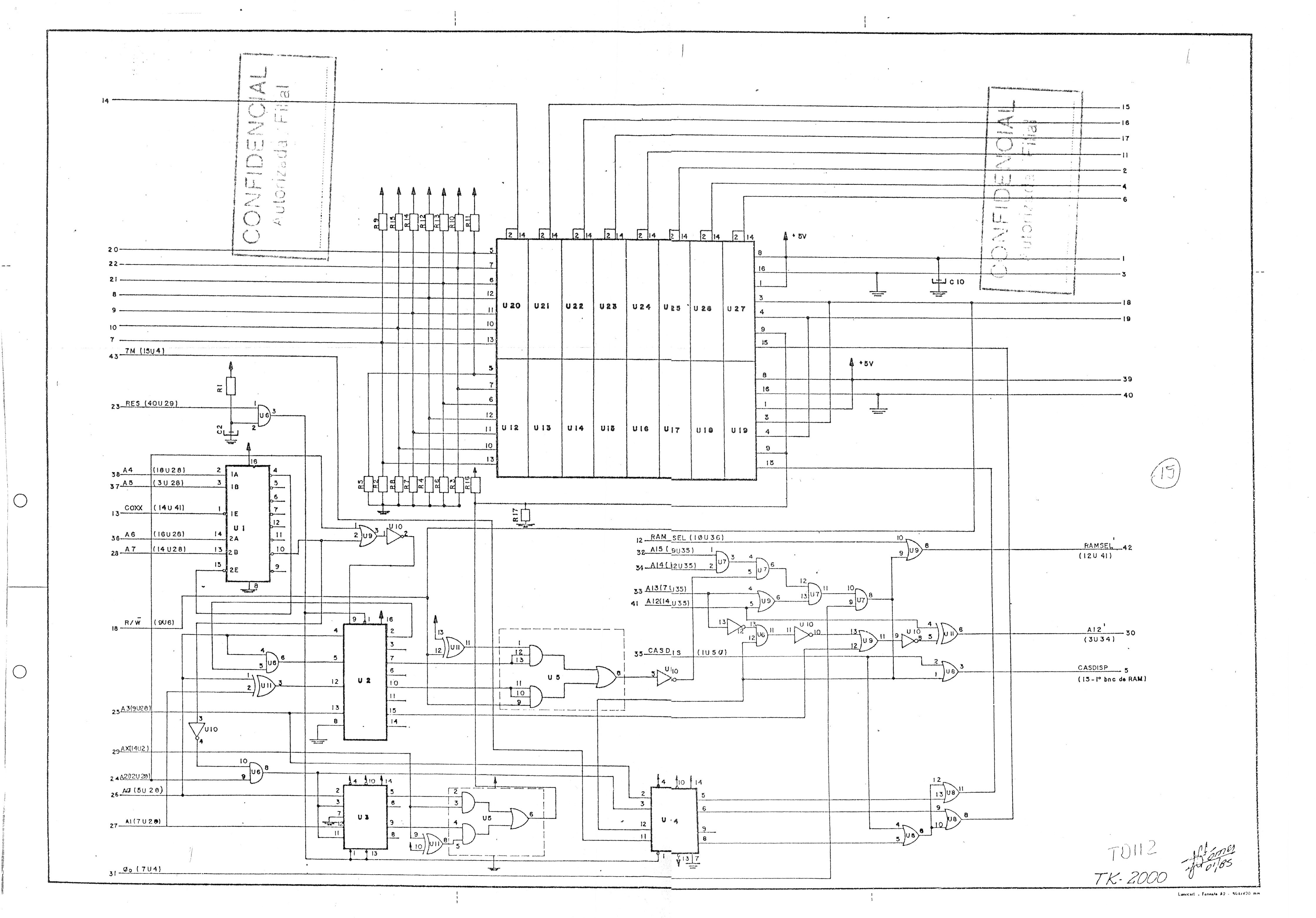 Esquema do microcomputador TK 2000 da Microdigital. Aqui uma outra versão do esquema, de 1985.