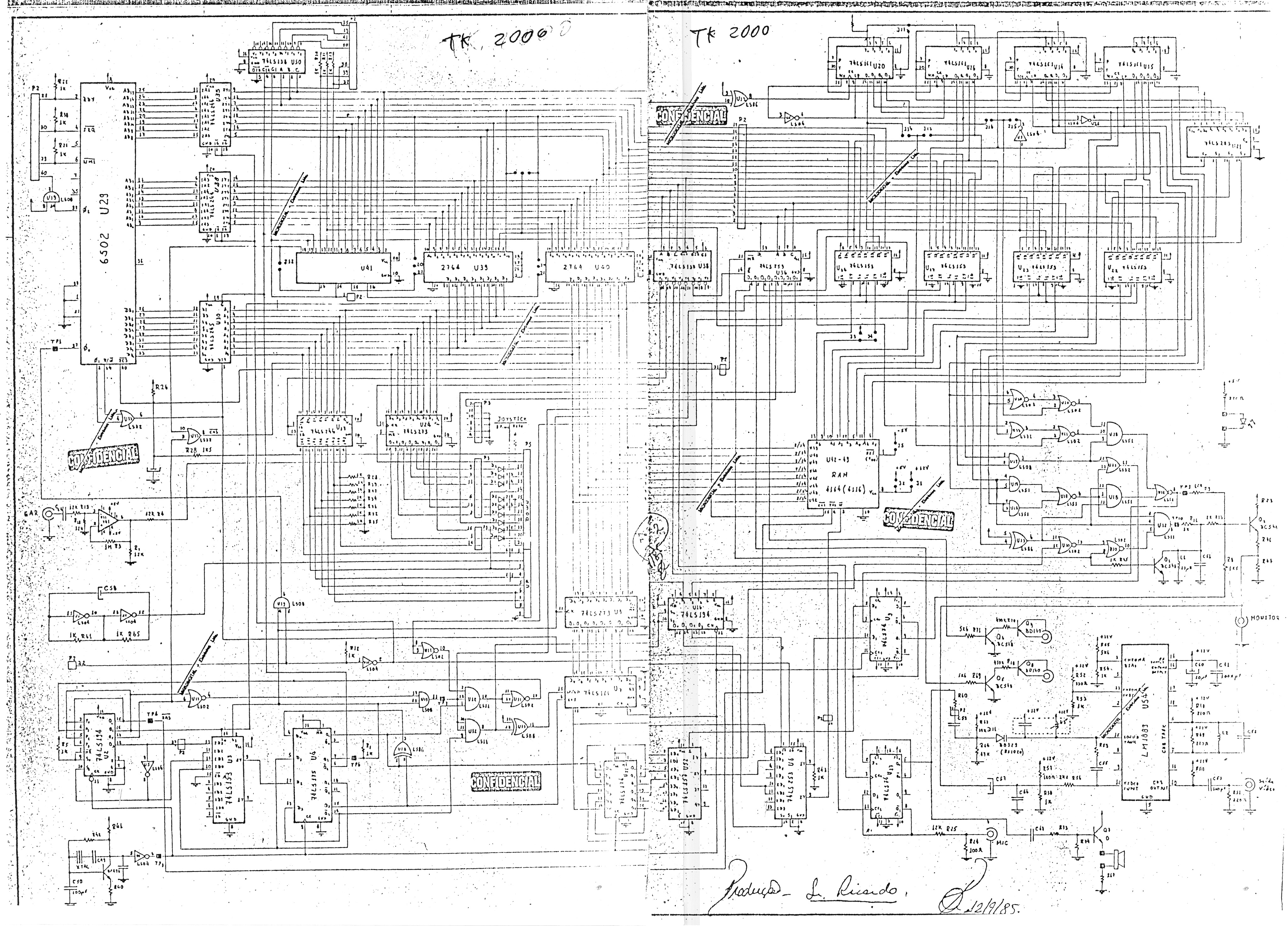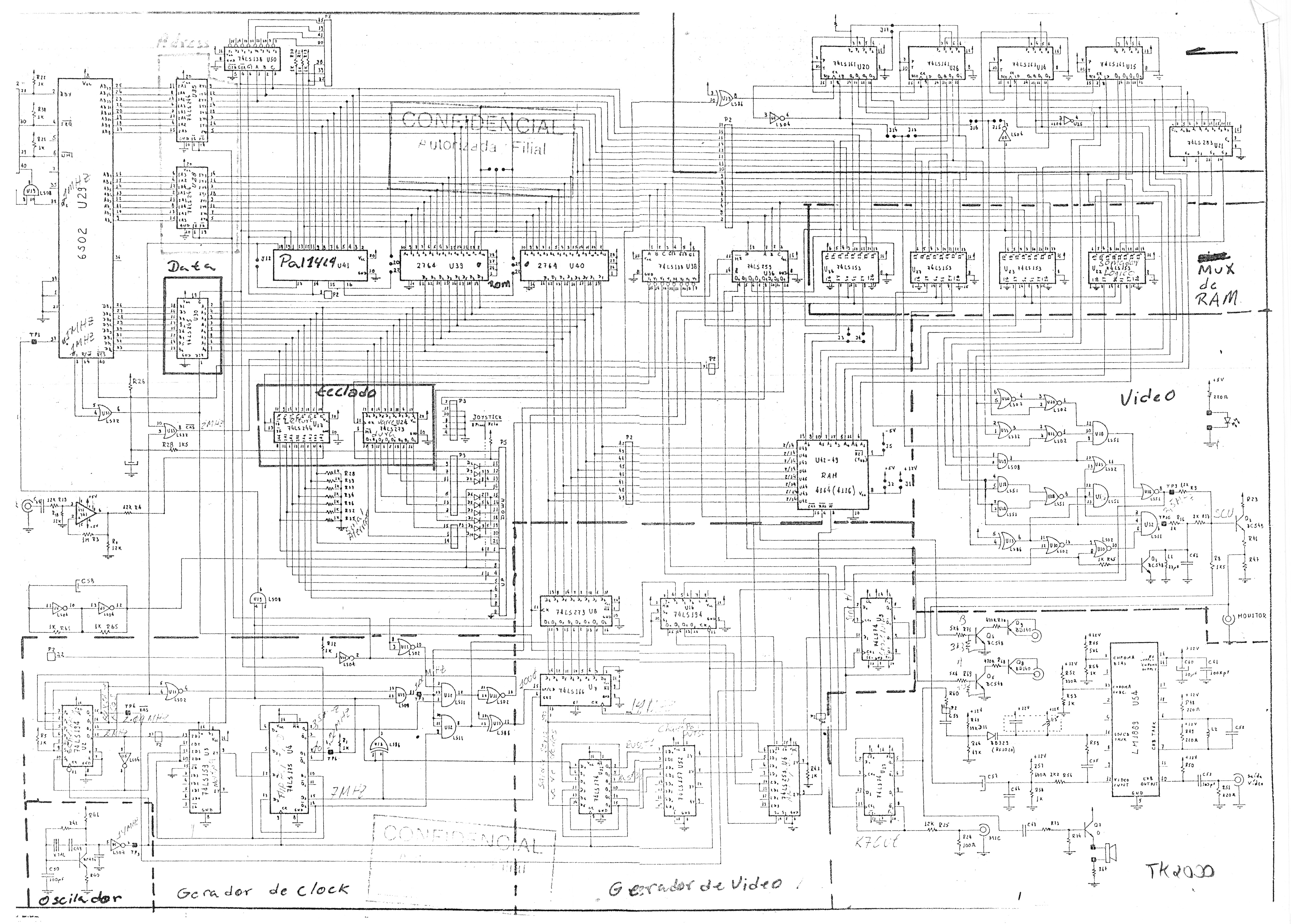 Esquema do microcomputador TK 2000 da Microdigital. Aqui uma outra versão do esquema, de 1985.