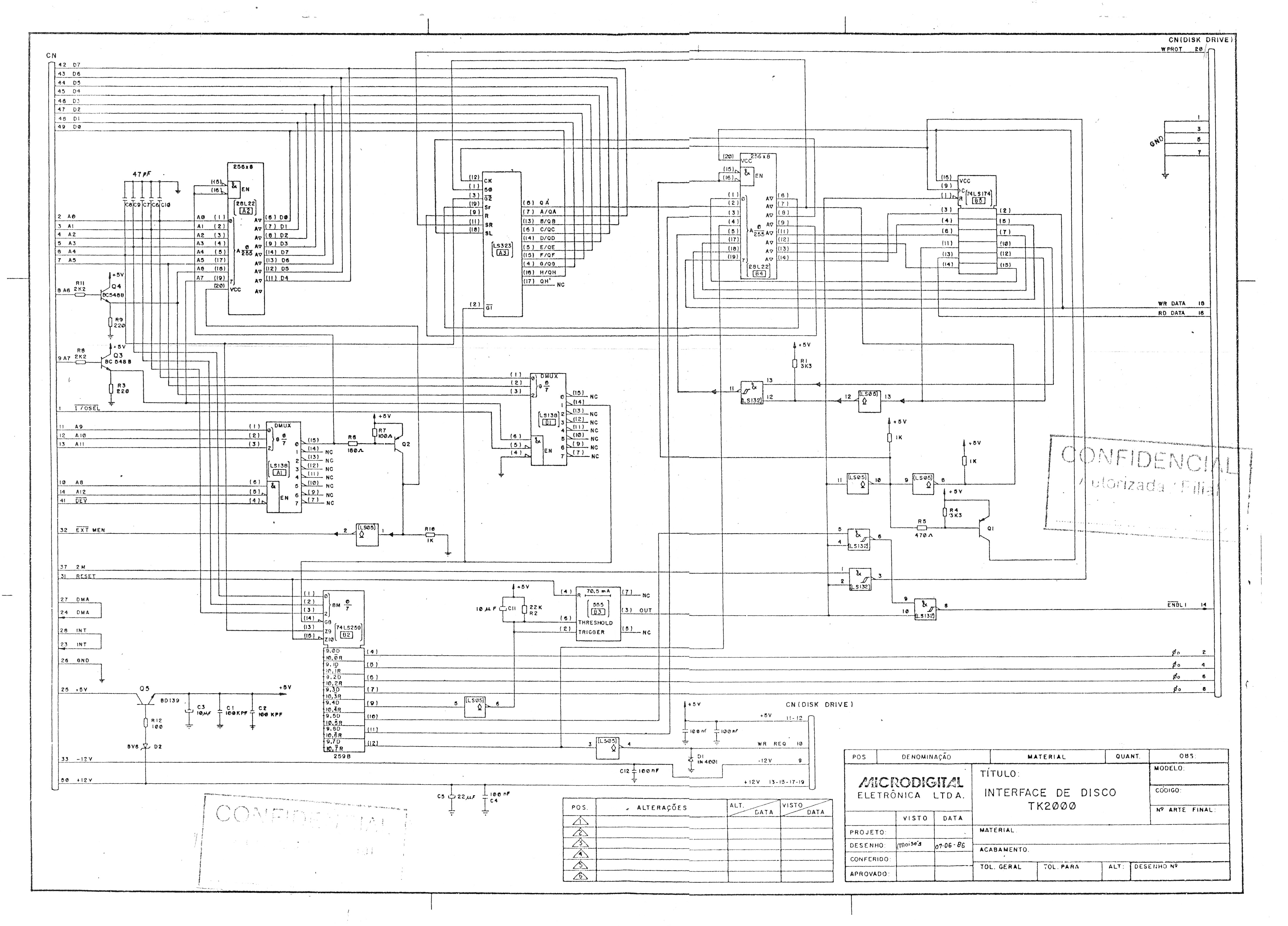 Esquema da interface de drive para o TK 2000, da Microdigital.