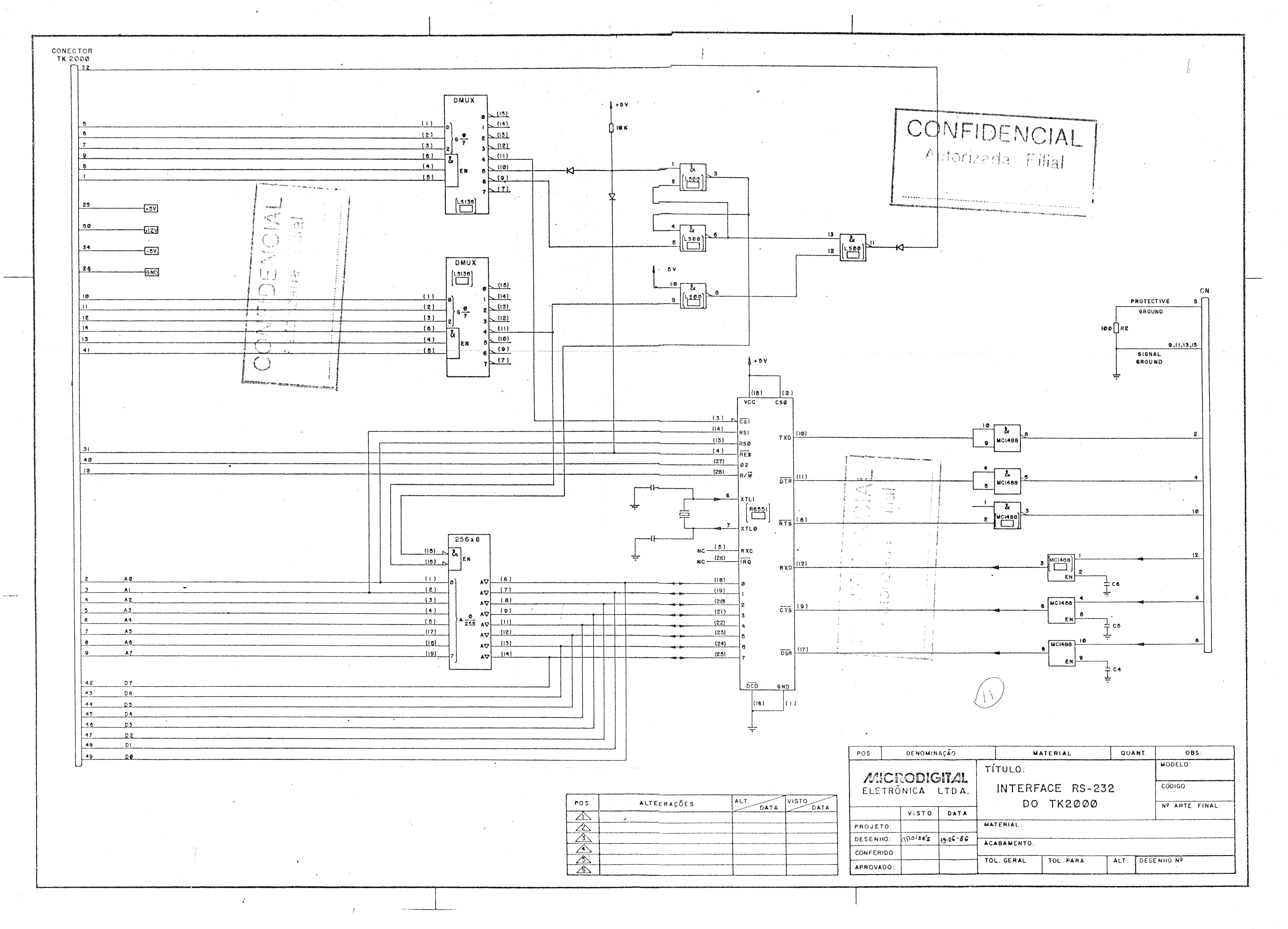 Esquema da interface serial RS-232 para o TK2000, da Microdigital.